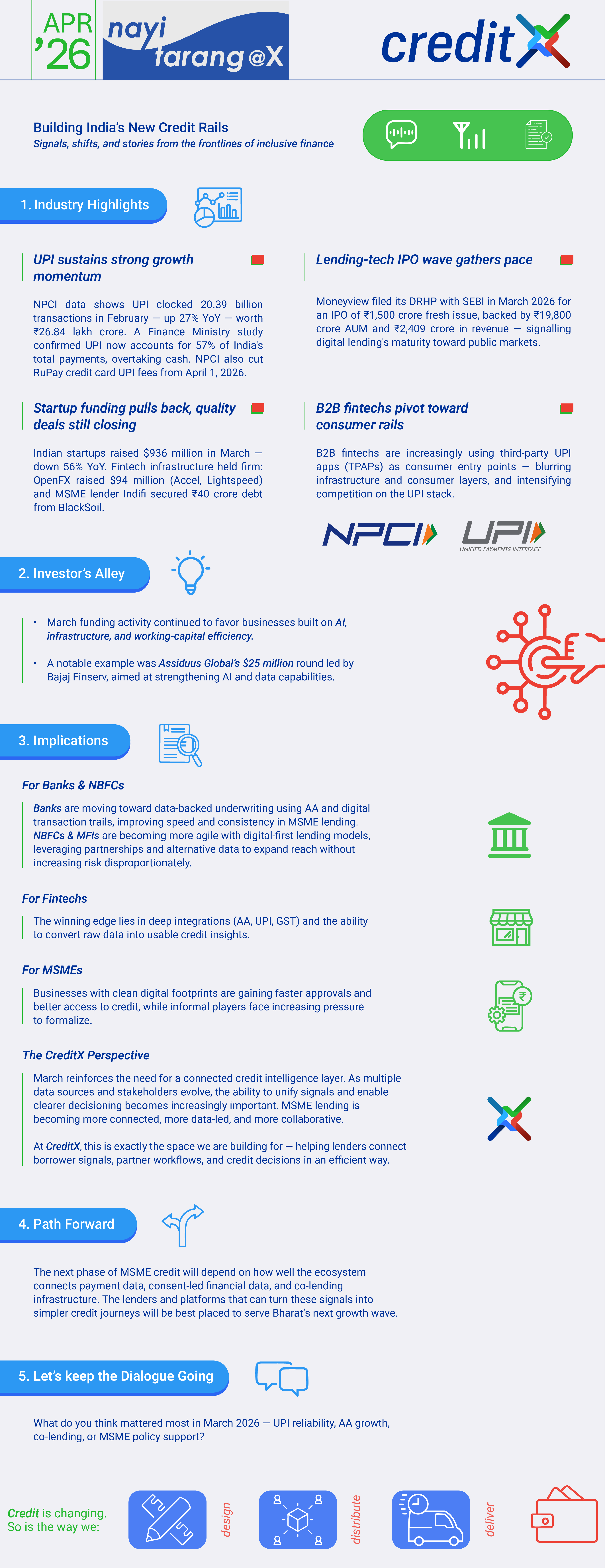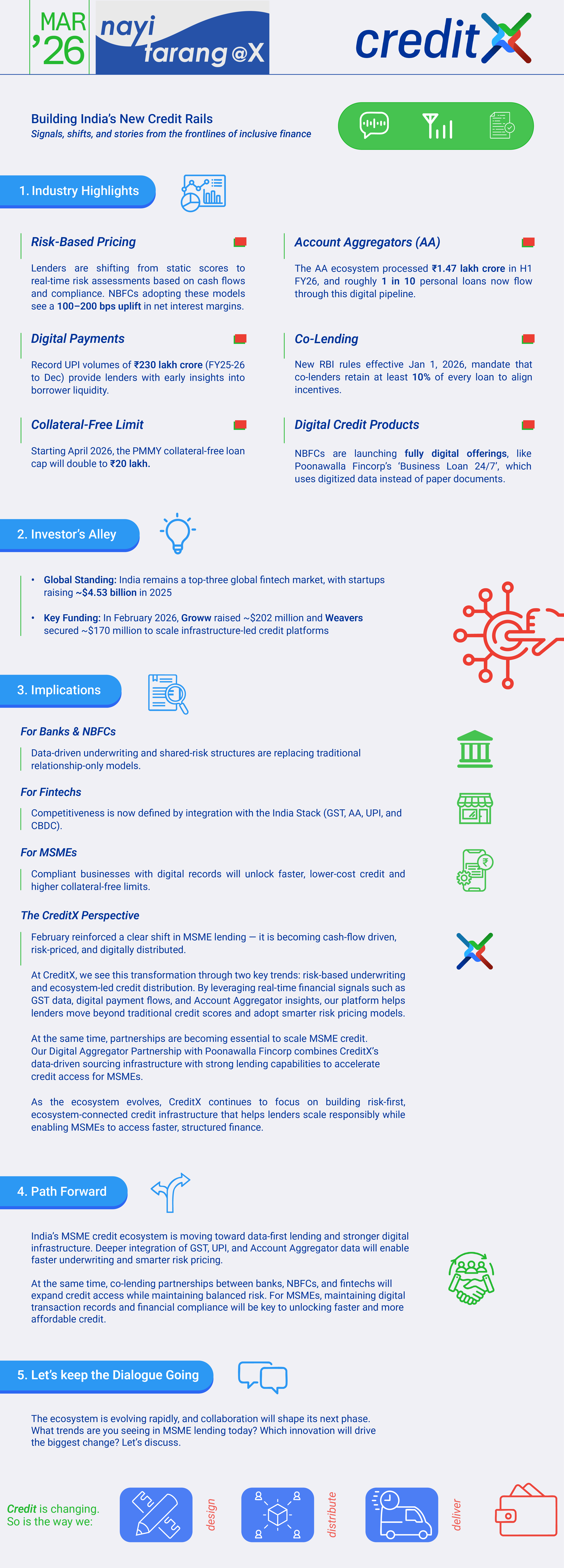In this edition of Nayi Tarang @X, we highlight new trends and what they mean for MSMEs, banks, NBFCs, and fintechs shaping the next phase of credit.
